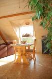 Le coin repas bénèficiant d'une superbe vue sur les Pyrénées: